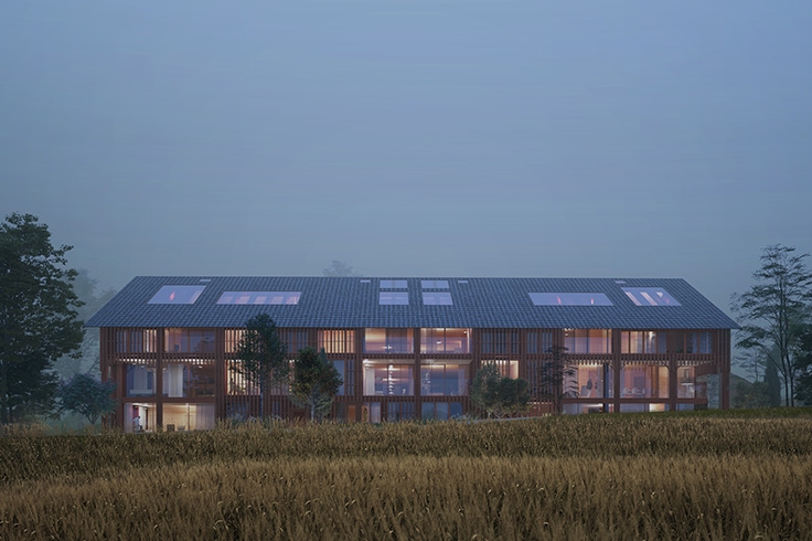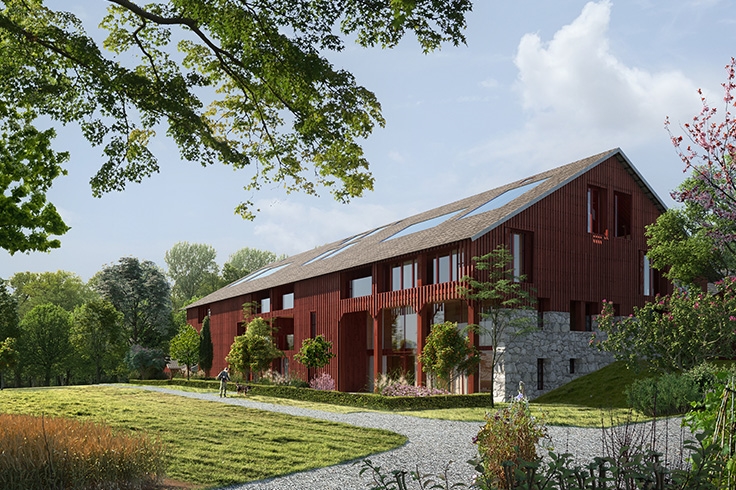 Sammen med CODE Arkitektur og InBy skal den opprinnelige låven som brant ned i brannen på 1950 tallet, rekonstrueres som en boliglåve. Woxen gård er med sine aner tilbake til 1647, en av Oslos historiske ikoner. Med moderne arkitektur og løsninger bak et historisk låveskall, og innenfor låvens grammatikk, skal fantastiske boliger skapes.
